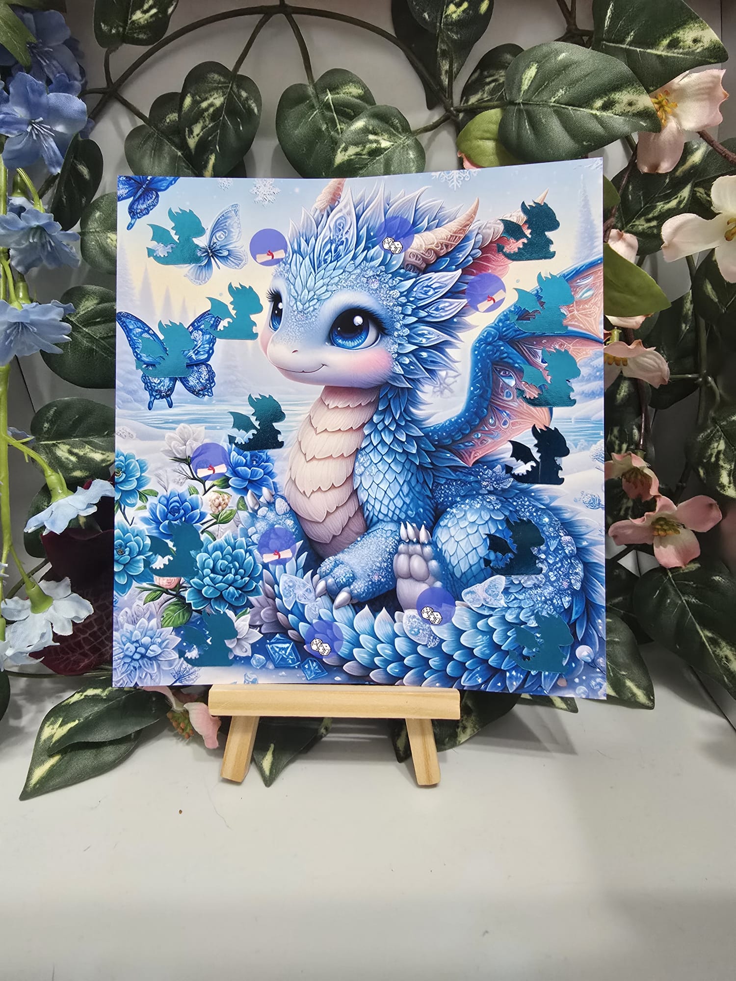 Blue Ivy ist ein wunderschöner blauer Drache. Sie hat eine Tombola, etwas zum Würfeln und einige Rubbelfelder für dich dabei.
