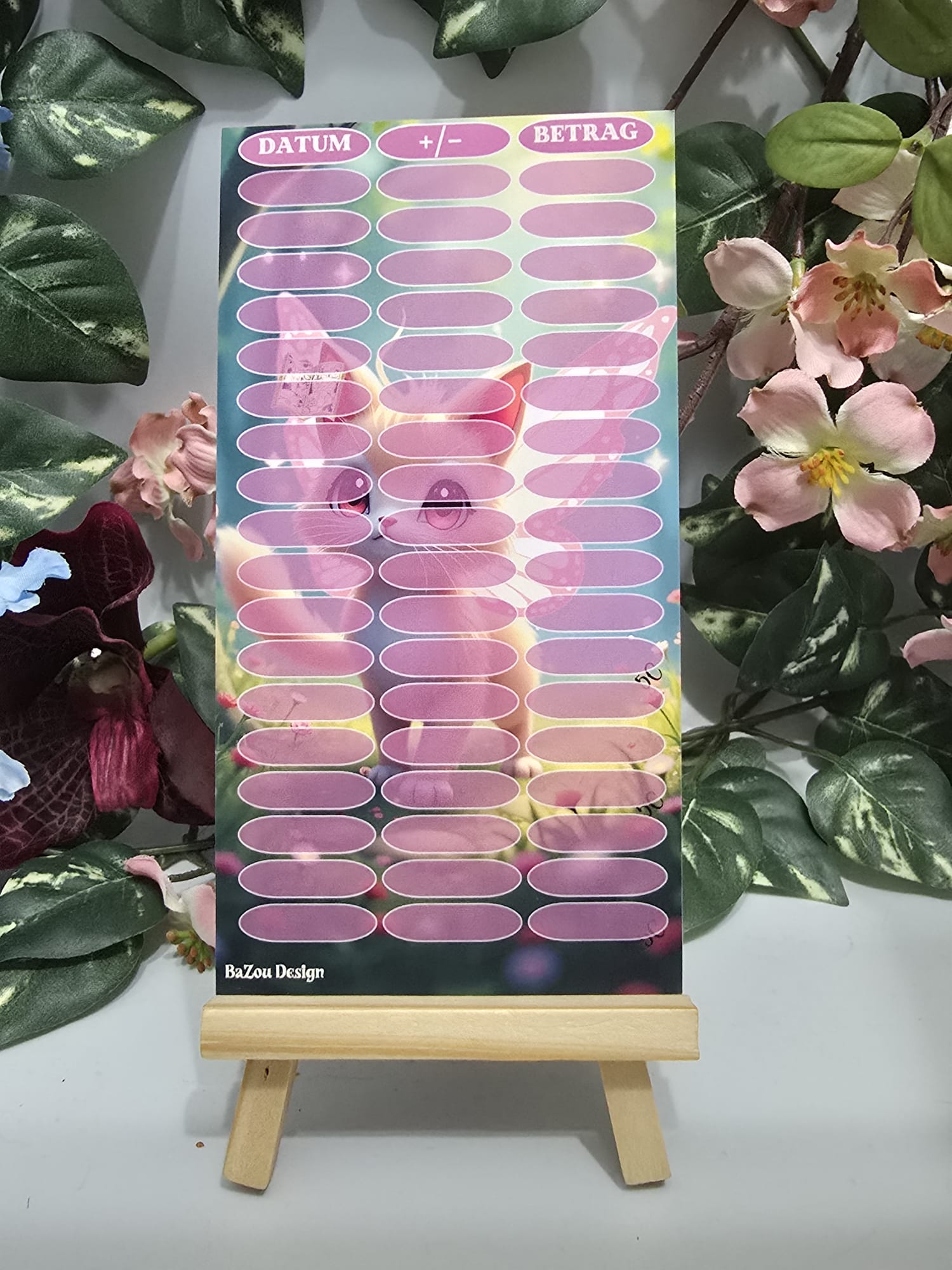 Fairy Cat ist eine folierte Abstreichchallenge. Die Beträge findest du in der rosa glitzernden Folierung.