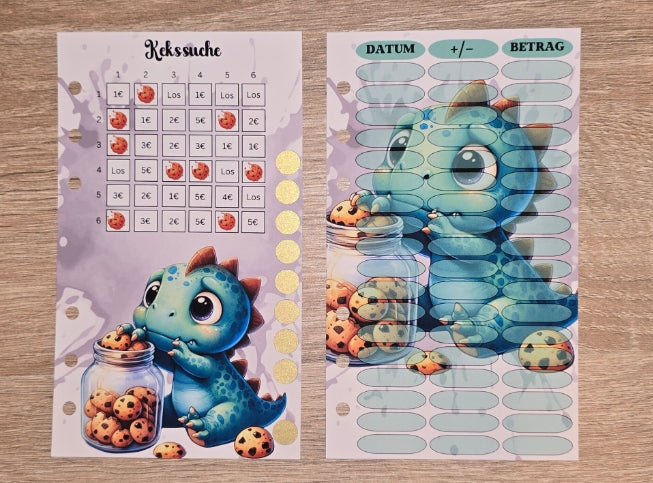 Hilf dem kleinen Dino an seine Kekse zu kommen und spare dabei spielerisch Geld. Die Challenge kommt gelocht und passt perfekt in deinen A6 Binder. Auf der Challenge findest du ein Bingo. Kommst du auf einen Keks, darfst du ein Feld frei rubbeln.