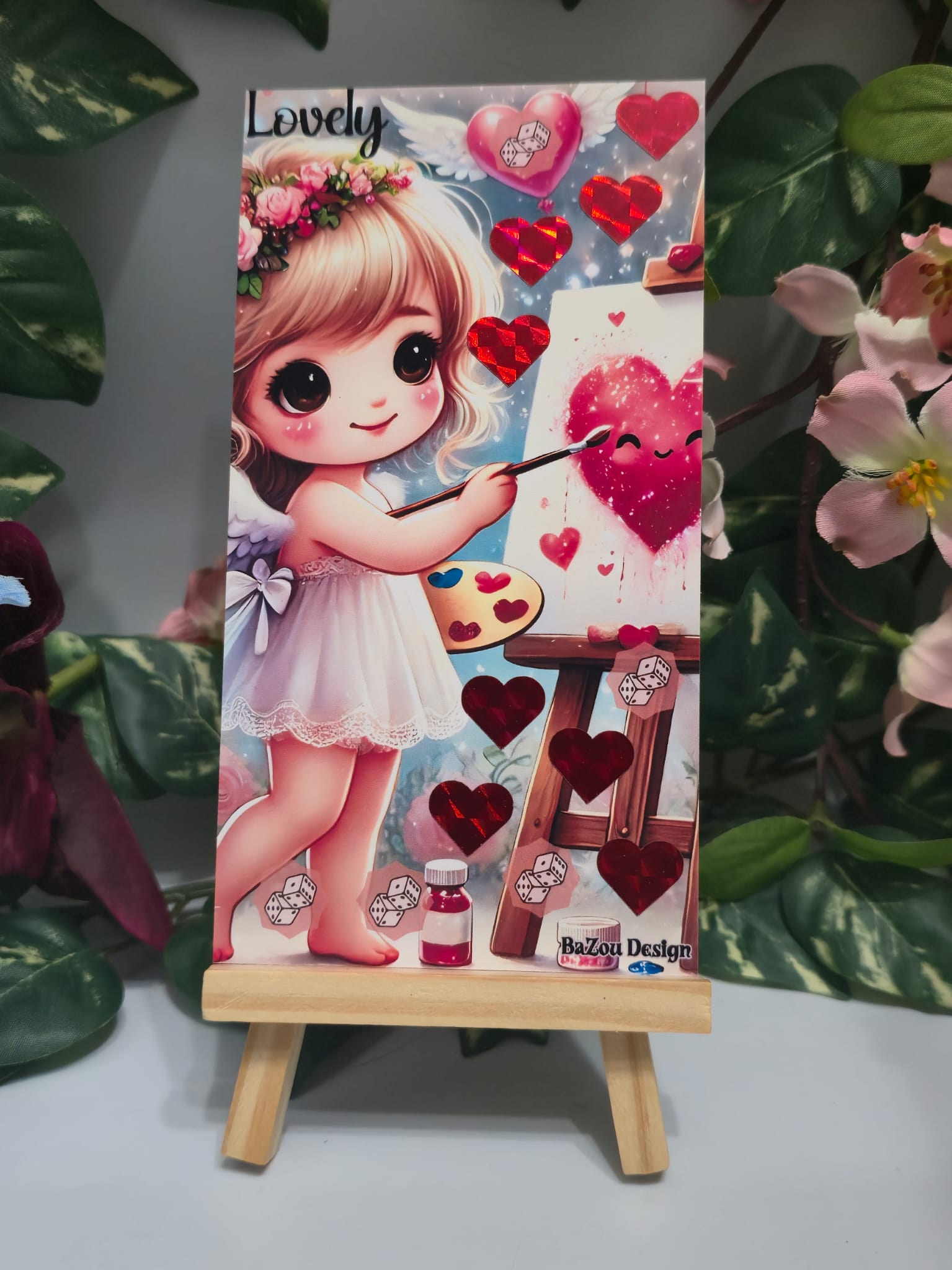 Spare mit Lovely spielerisch und mit Spaß. Du hast etwas zum Würfeln und ein paar Rubbelfelder.