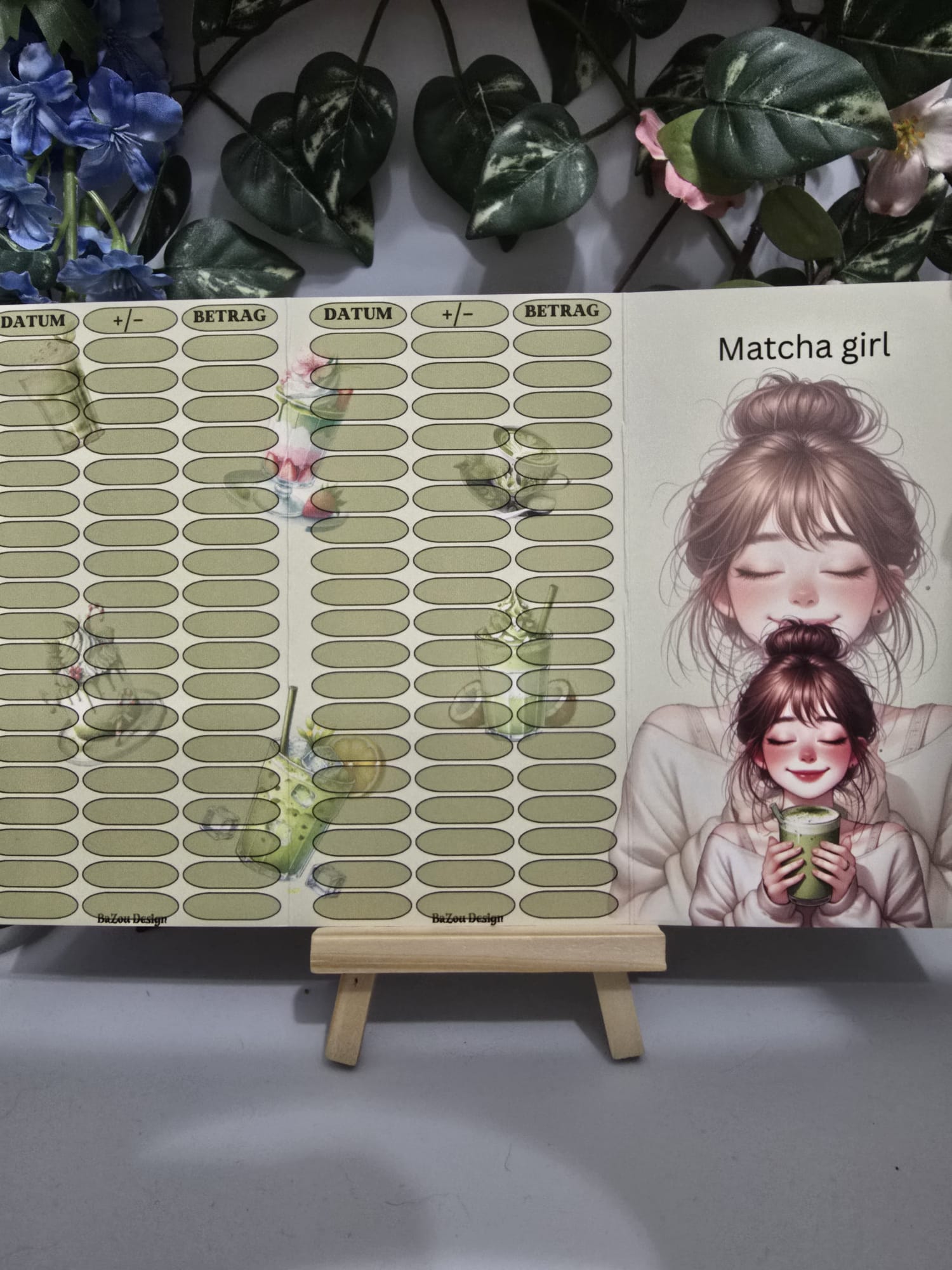 Diese Matcha Klappkarte kommt zu dir mit etwas zum würfeln, etwas zum Rubbeln, ein paar Losen und Beträgen zum Abstreichen.