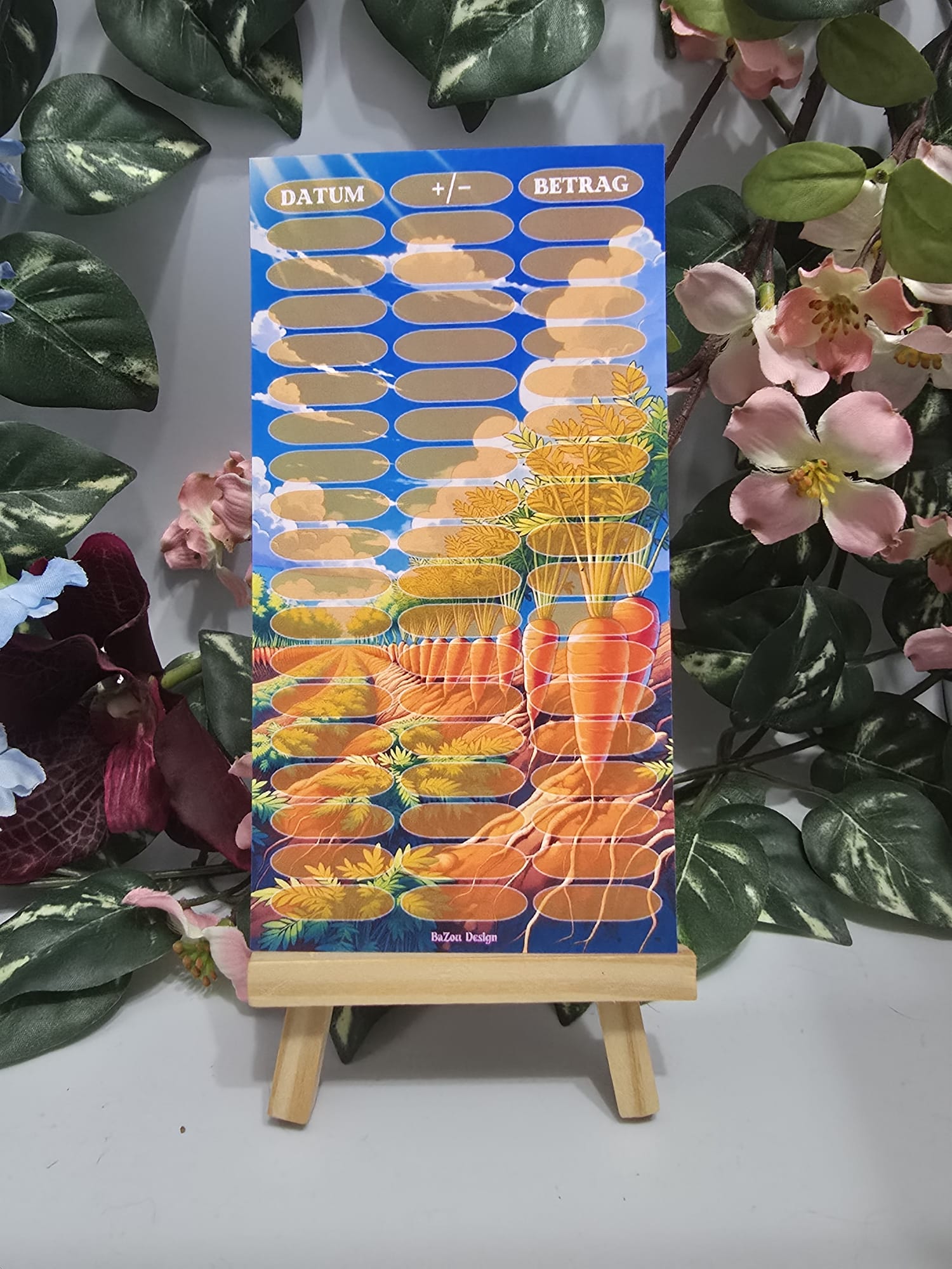 Diese süße Sparchallenge kommt mit einer wunderschönen orangenen Folierung zu dir. Du hast einige Beträge zum Abstreichen.