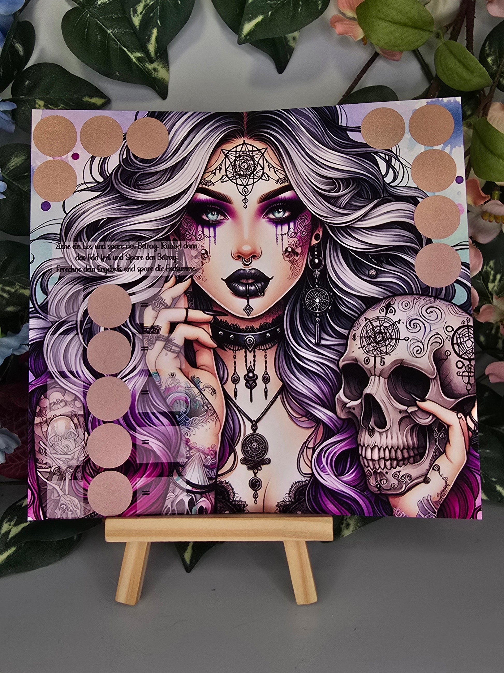 Du liebst kräftige und wunderschöne Farben? Dann ist die Princess of Darkness genau das Richtige für dich. Diese Klappkarte lässt keine Wünsche offen, Du hast einige Rubbelfelder und ein paar Rechenaufgaben. Ziehe zuerst ein Los und spare den Betrag. Danach würfelst du mit einem Würfel deiner Wahl und sparst auch diesen Betrag. Rubbel zum Schluss das Feld in der Mitte auf und stelle so deine Rechenaufgabe fertig. Spare jetzt das Ergebnis deiner Rechenaufgaben.